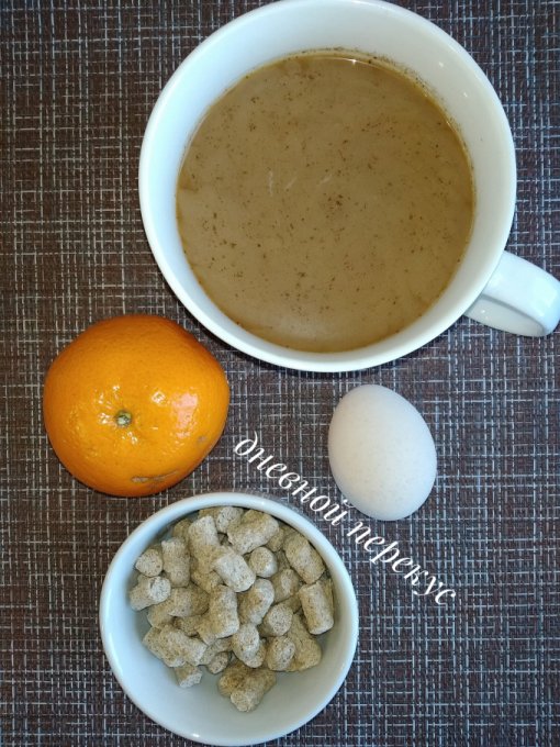Дневной перекус: яйцо, овсяные отруби, мандарин, кофе с молоком.