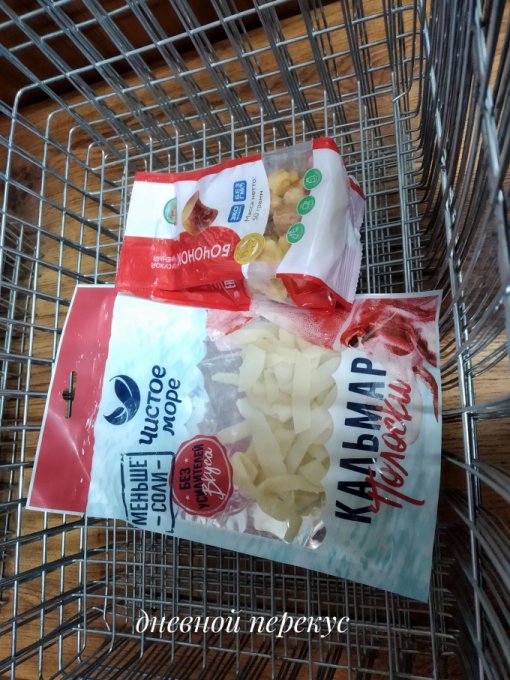 Дневной перекус/обед: копченый сыр, сушеный кальмар.