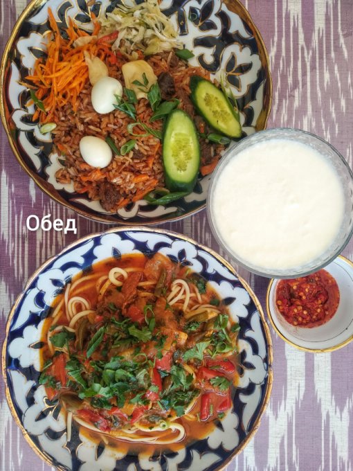 У мужа "выходной" от бытовых весов, а это значит что можно устроить вылазку в кафе🍽️ В этот раз выбор пал на узбекскую кухню🇺🇿 Порции огромные, блюда жирные, цены демократичные - в общем отлично пообедали)