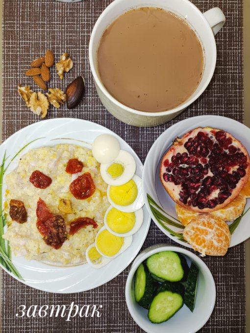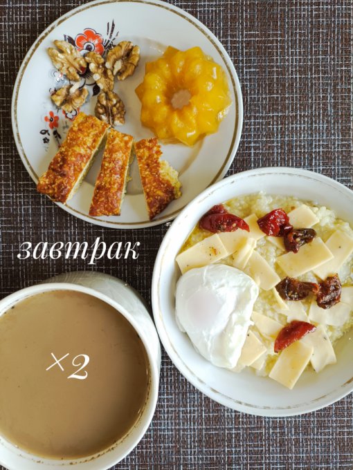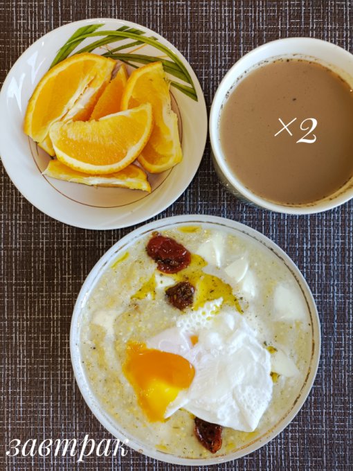 | Каша с моцареллой, томатами и яйцом |