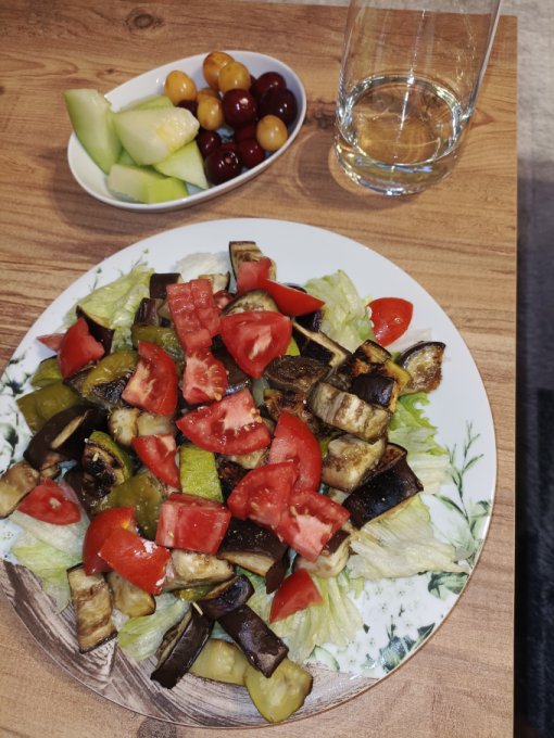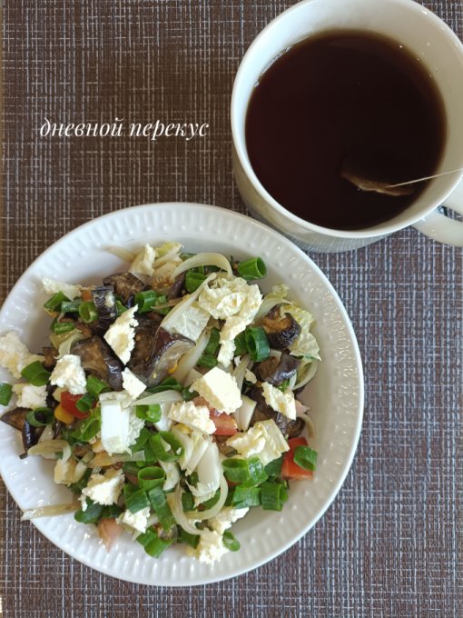 | Теплый салат с жареными баклажанами |