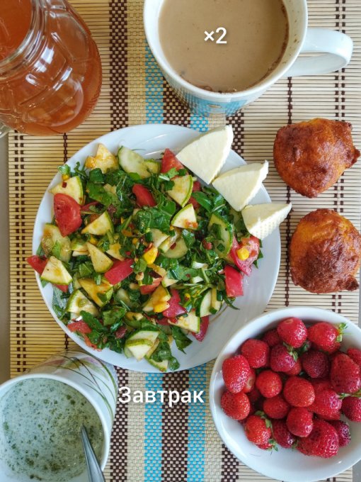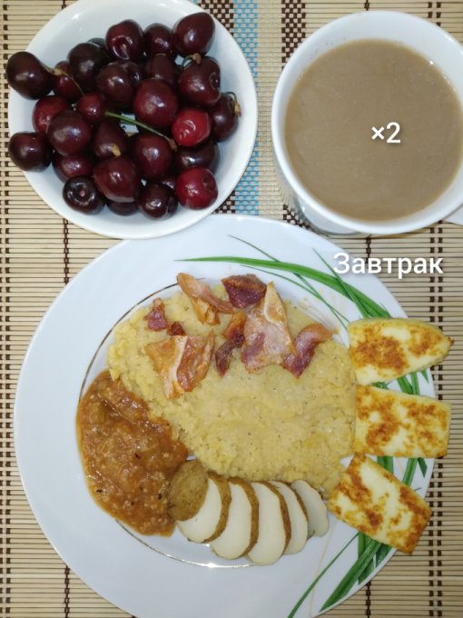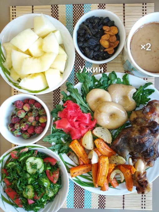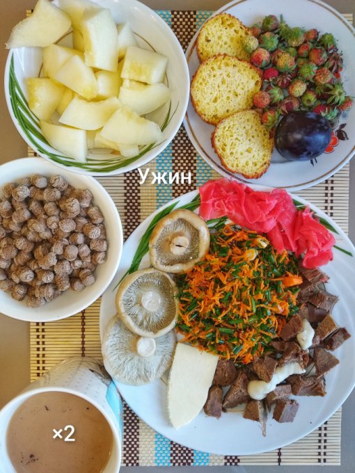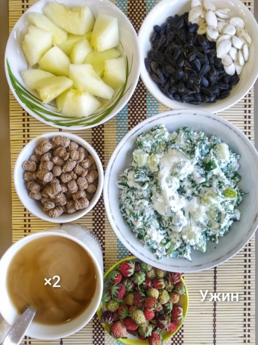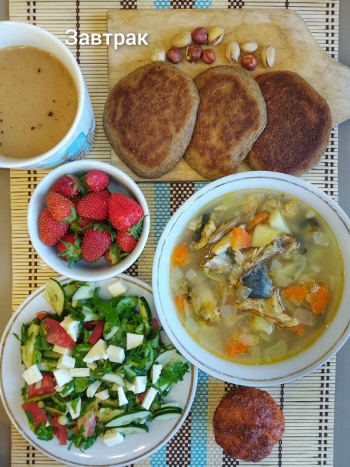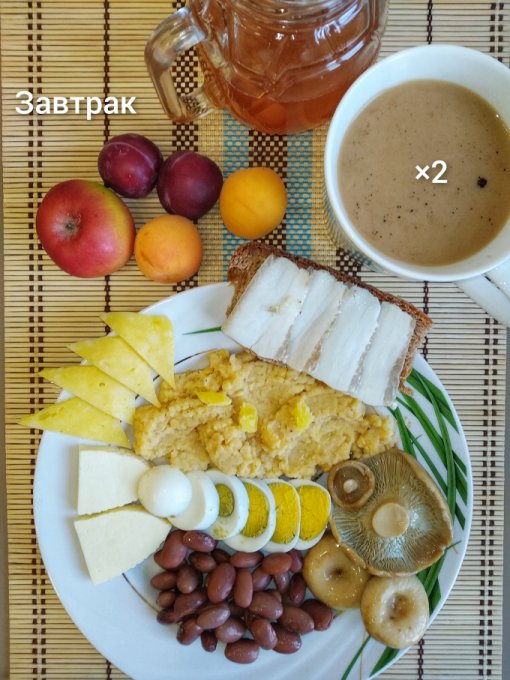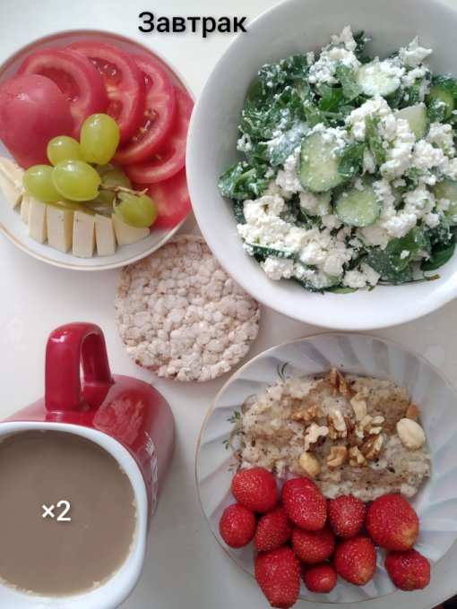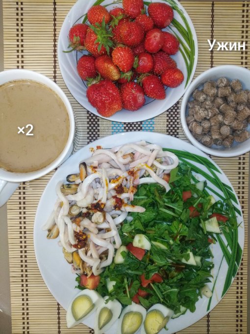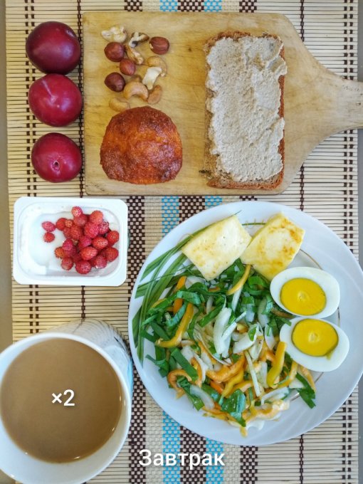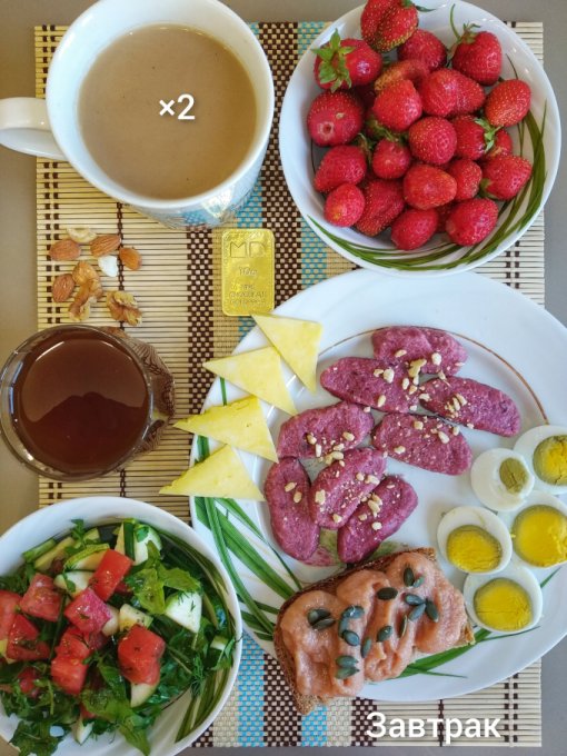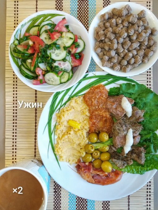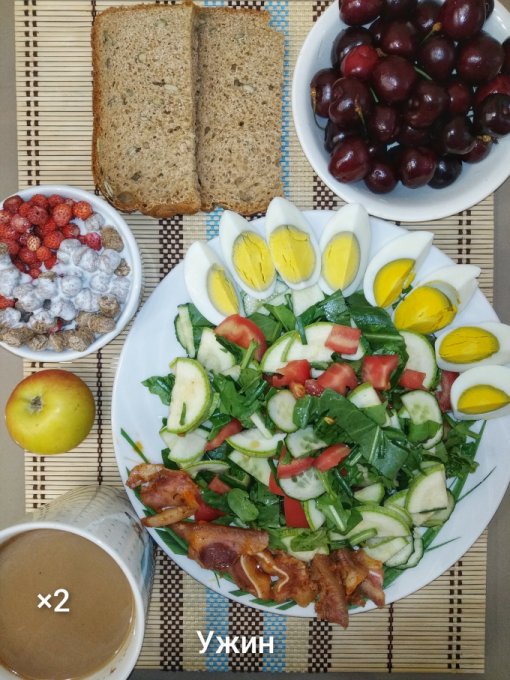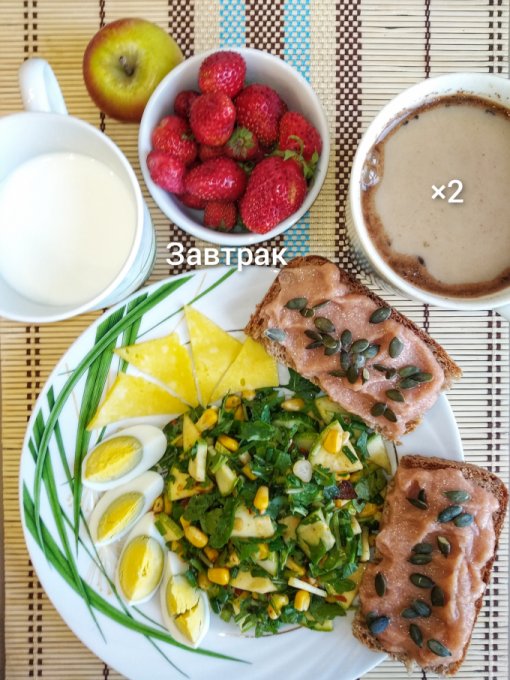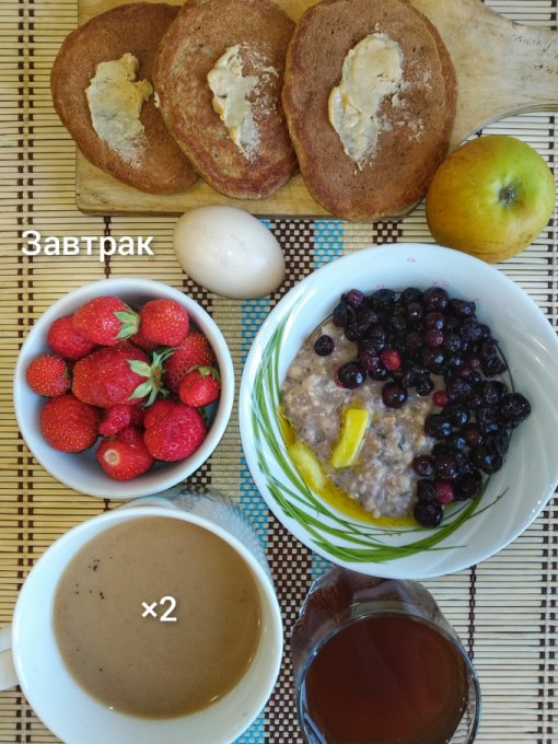 маслом, яйца🥚, свиные уши, хлеб, отруби с кефиром и земляникой,