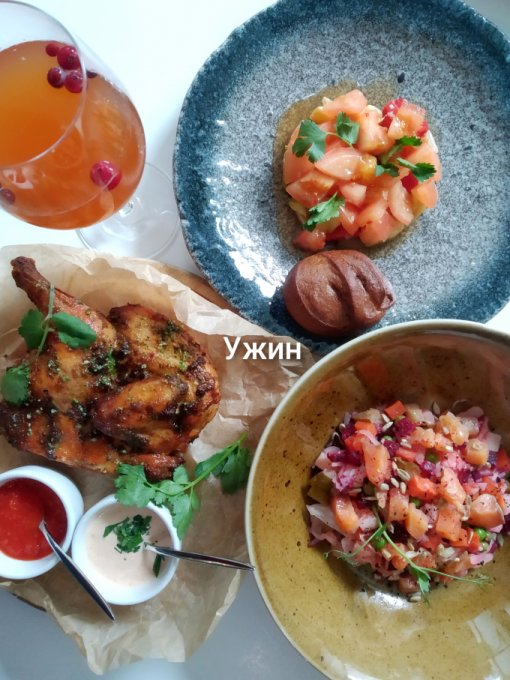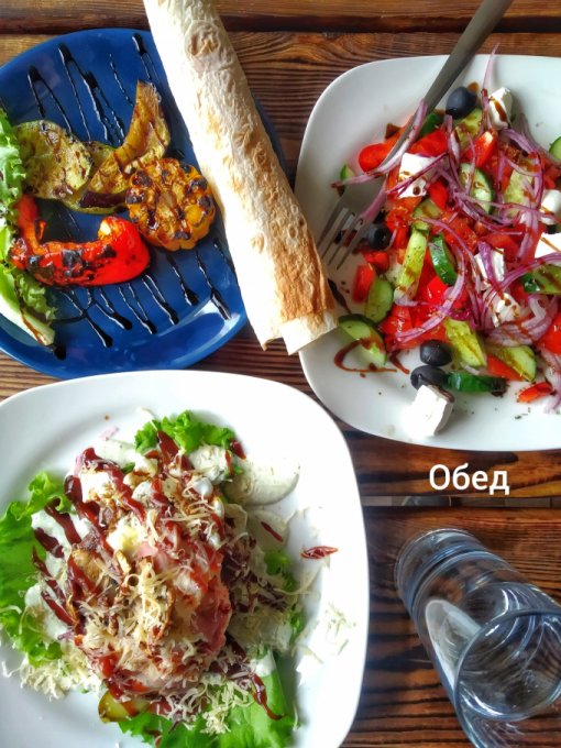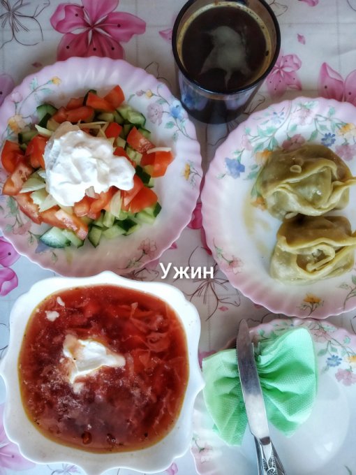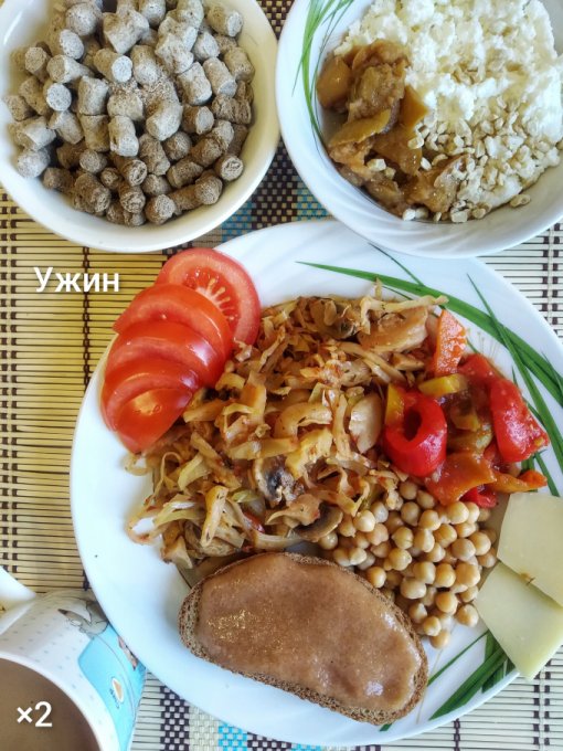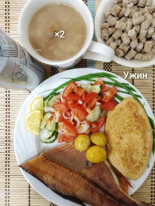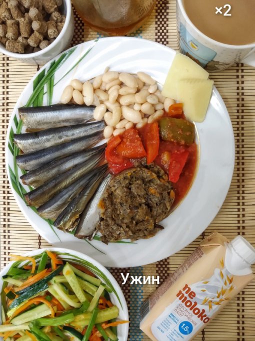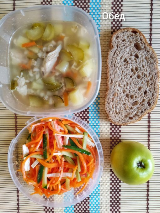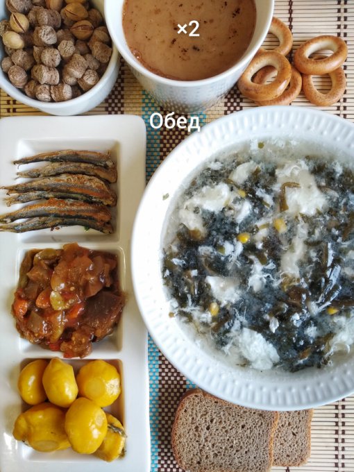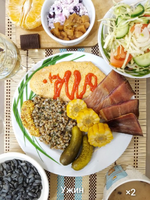 порошком сныти, салат (корейская морковь, огурец, зеленый лук),