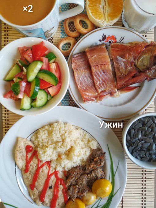 гематоген, апельсин, вино, семечки, кофе с молоком.