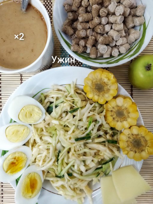 огурцы маринованные, кукуруза, салат (капуста, помидор, огурец,