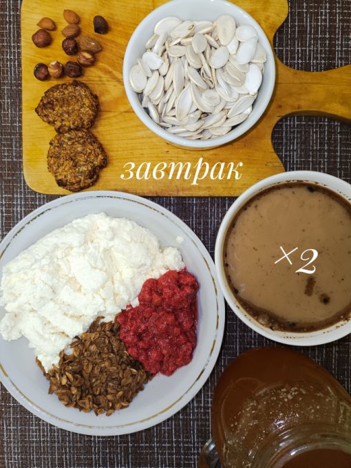 Завтрак: творог 18%, земляника,