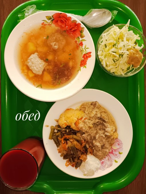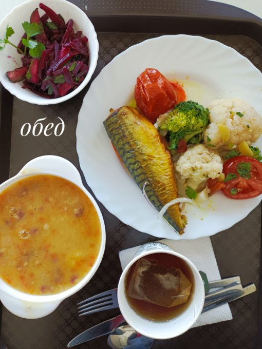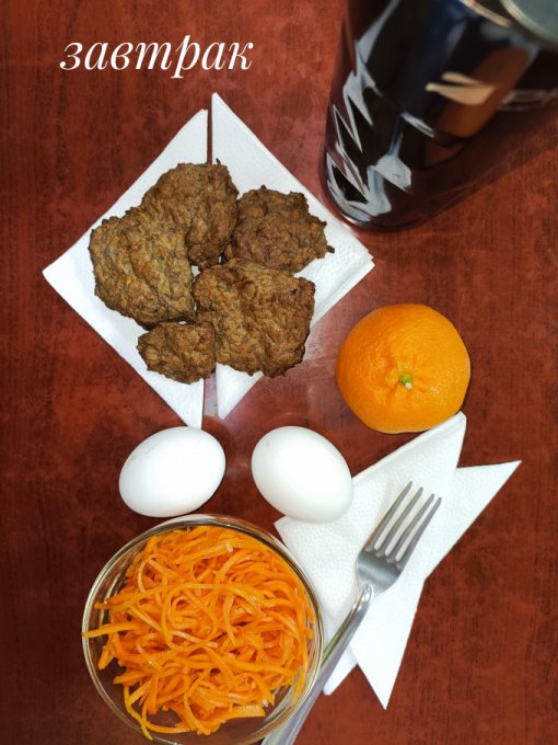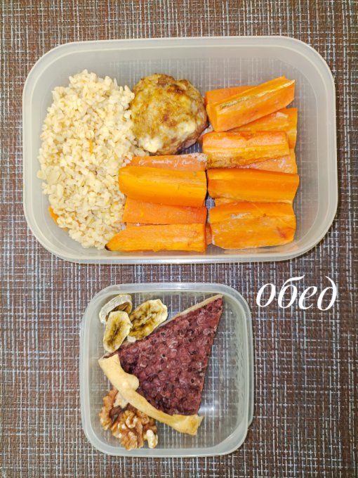 Обед: тефтель, запечённая морковь,
