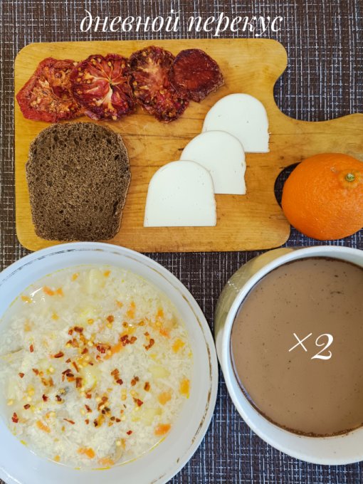 бородинский хлеб, сушеные томаты, копчёный сулугуни, кофе с