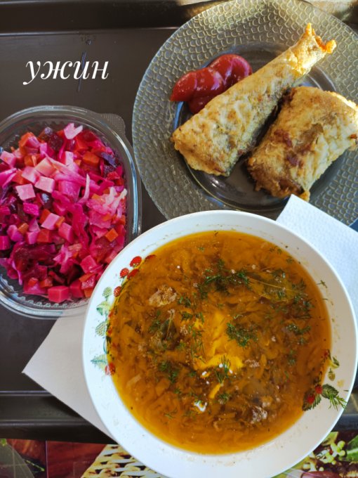 Дневной перекус: куриный суп с яйцом,