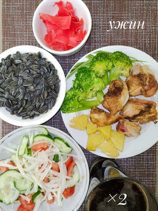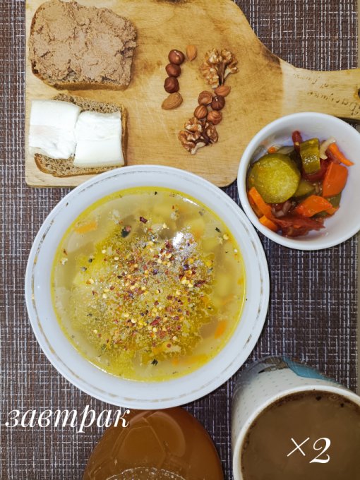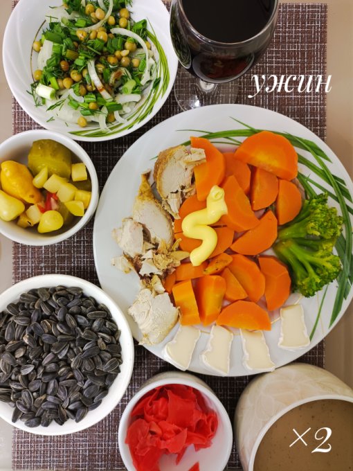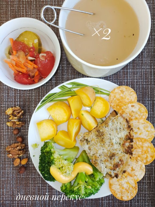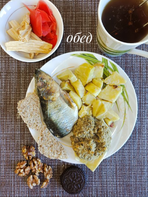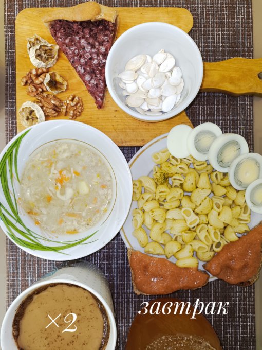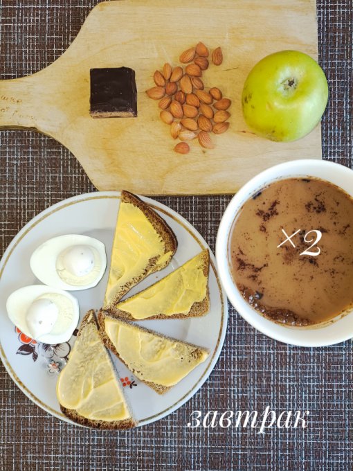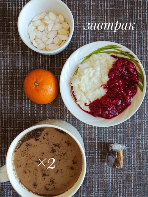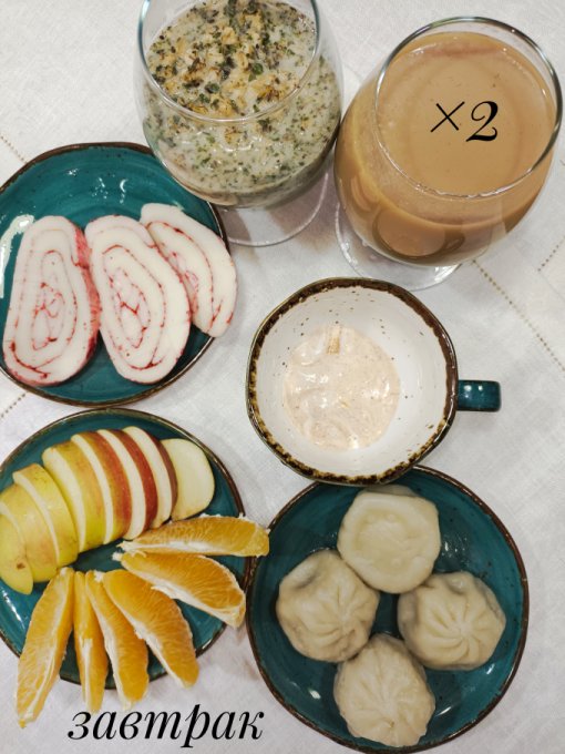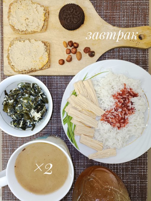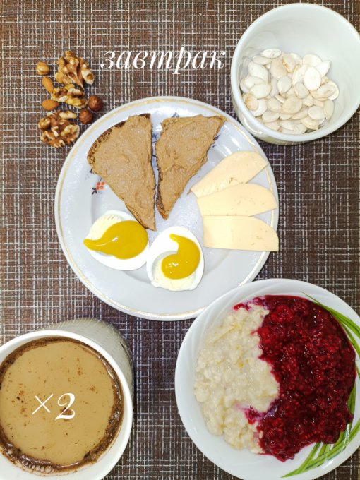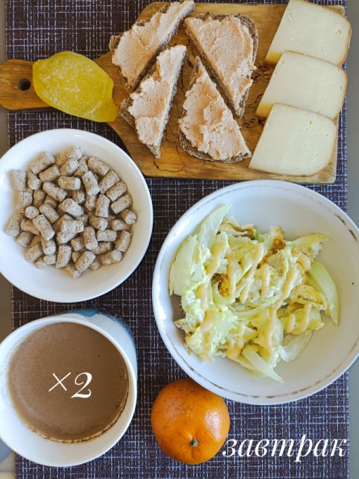 кунжутное масло), бутерброды с икрой минтая, овсяные отруби,