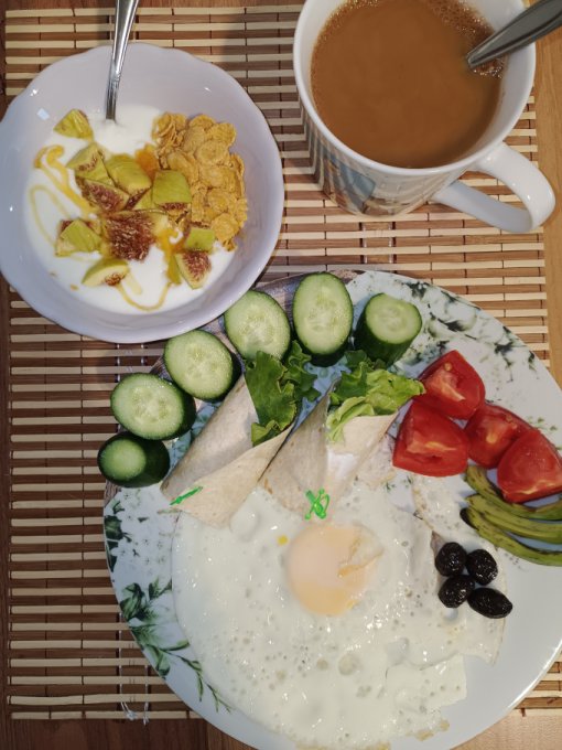 медом; яйцо+белок; рулет с сёмгой; овощи; оливки; авокадо 🥑