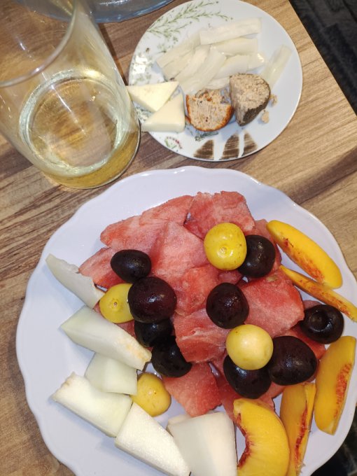 Вечерний перекус: сыр; фрукты; вино