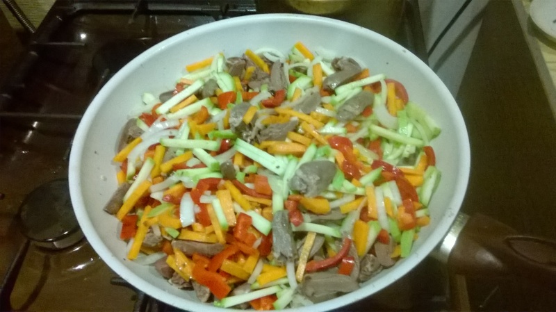3. Сердечки порезать четвертинками или произвольно, все сложить в