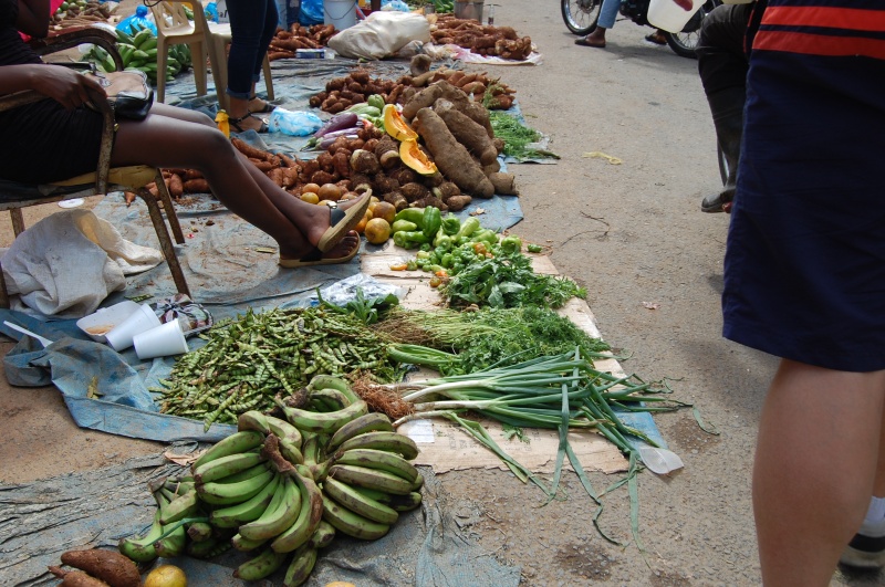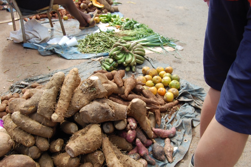 прилавков нет, все на земле на холстинах лежит, все рядом