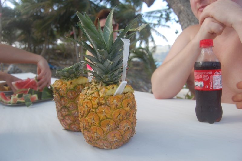 принесли в ананасе)) И выпивка и закуска)) Я потом остатки мякоти