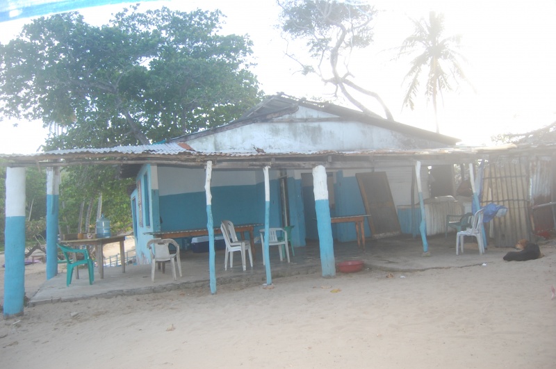 сарайчик, где готовят еду и столы на берегу океана, но все