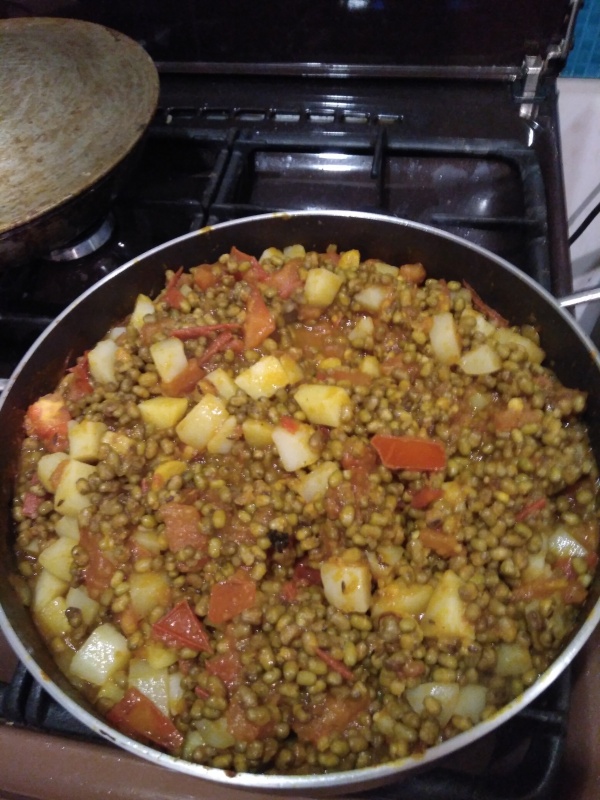 10. Добавить в соус картофель, маш и готовить ещё минуты