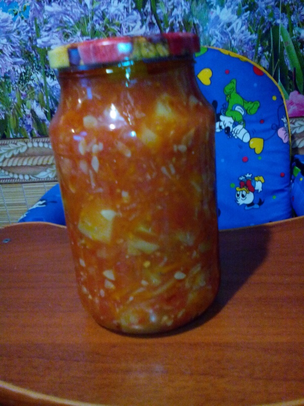 разложить по стерильным банкам горячий салат, закатать, укутать,