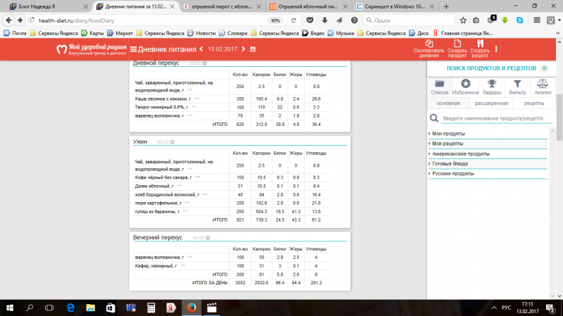 | Итого за день | 3634 | 1657.7 | 103.4 | 43.5 | 213.5 |