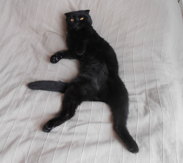 не поверите, она никогда ничего не царапает, не лазит по столам, она очень меланхолична и спокойна и ходит только в свой лоток, а спит только на своем месте, как настоящий человечек