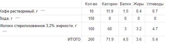 Например кружка кофе растворимого с молоком это около 200 ккал,