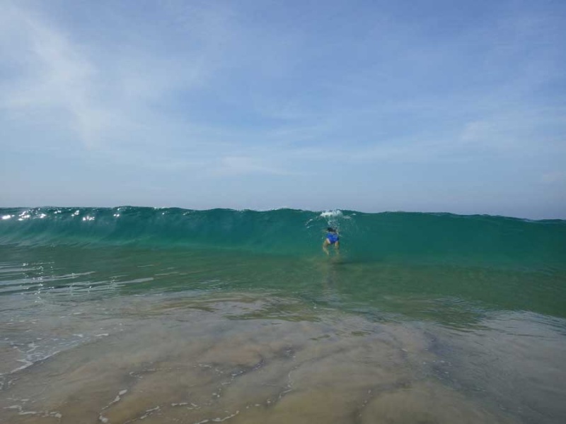 посредственныйпловец как я. Сейчас попробую дать фото со своей задницей в волне. Это двухметроваяволна, под которую я подныриваю. Самое главное, чтобы белый барашек не дал по башке, иначе внутри волны будет вертеть так, что мало не покажется.