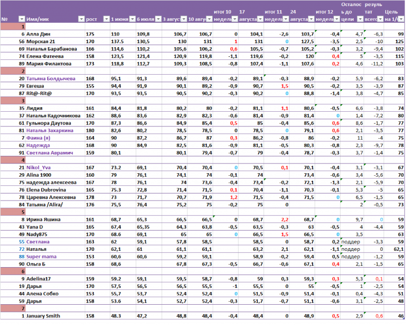 170, желаемый к 01.12.16- 70кг. Всем здоровья и хорошего