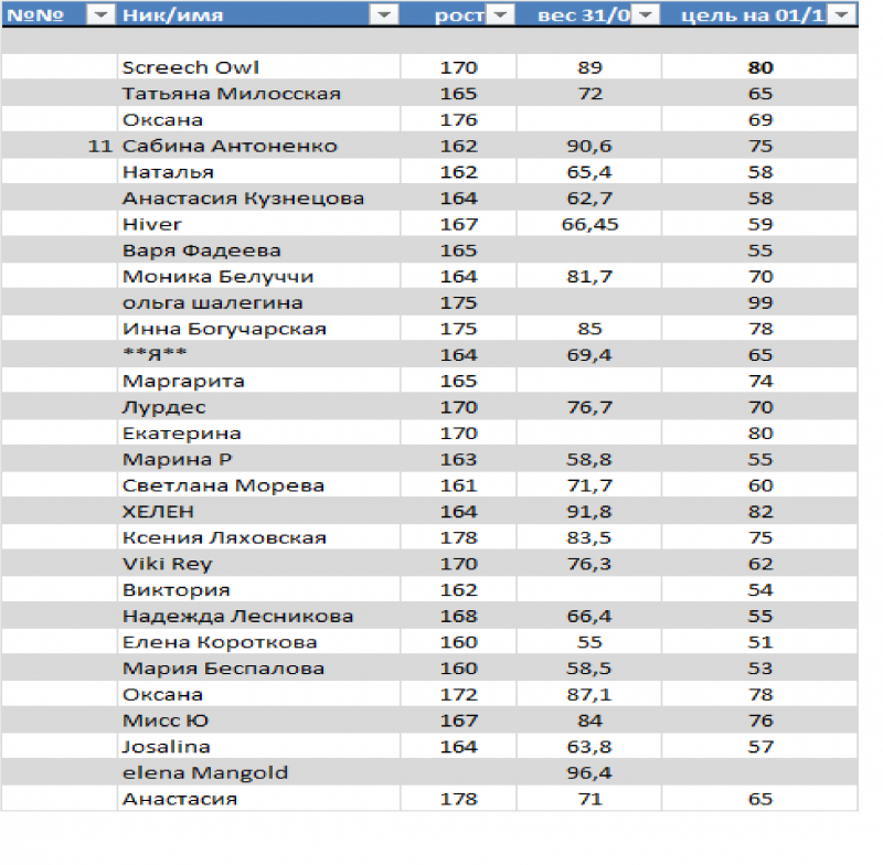 Я забыла написать. Рост 161 см. Цель 85кг на 1 декабря