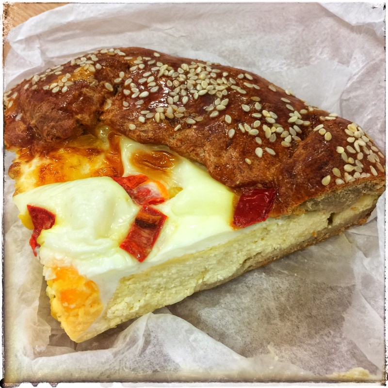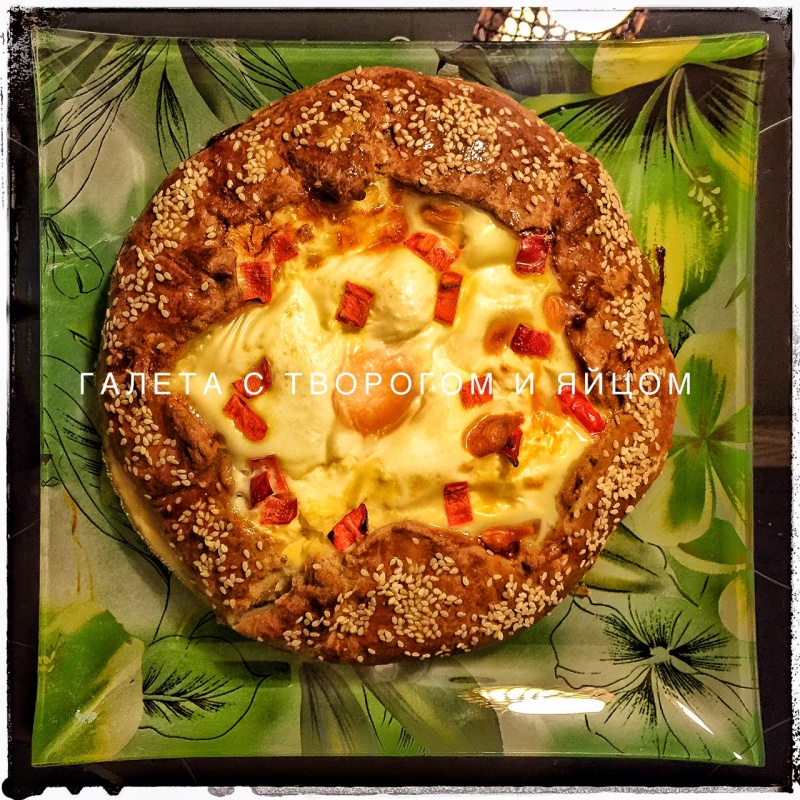 галету, сделать небольшое углубление в творожной начинке и разбить