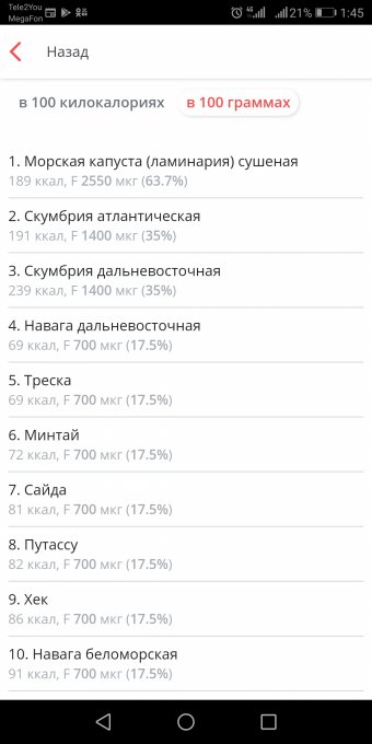 А так в списке есть морская капуста сухая, скумбрия, треска, рыбы много разной, грецкий орех.