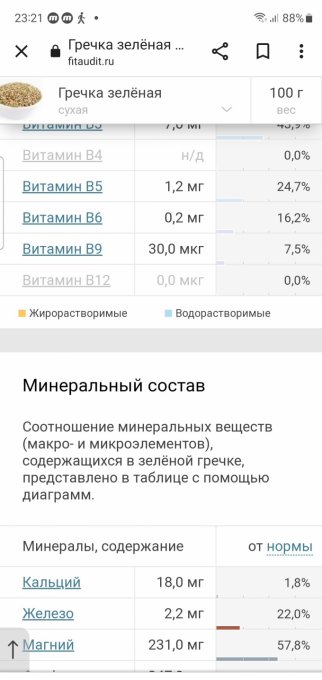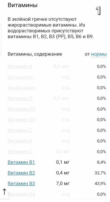Добрый день) Помогите, пожалуйста: есть ли здесь или у кого-нибудь все нутриенты зеленой гречки и пророщенной зеленой гречки?