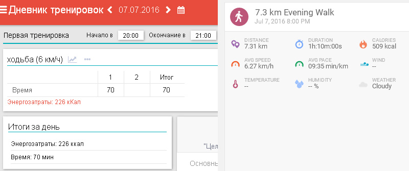 Я долго не мог понять как учитывать затраты на тренировках, иногда