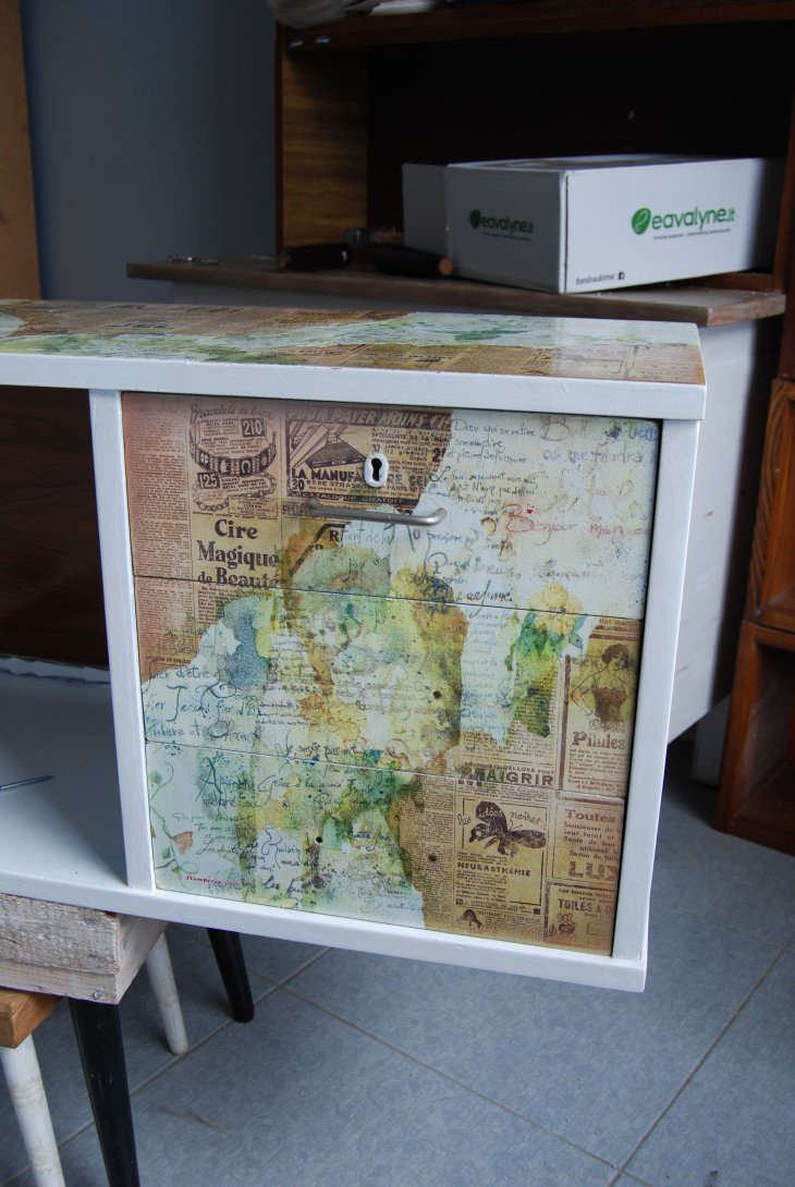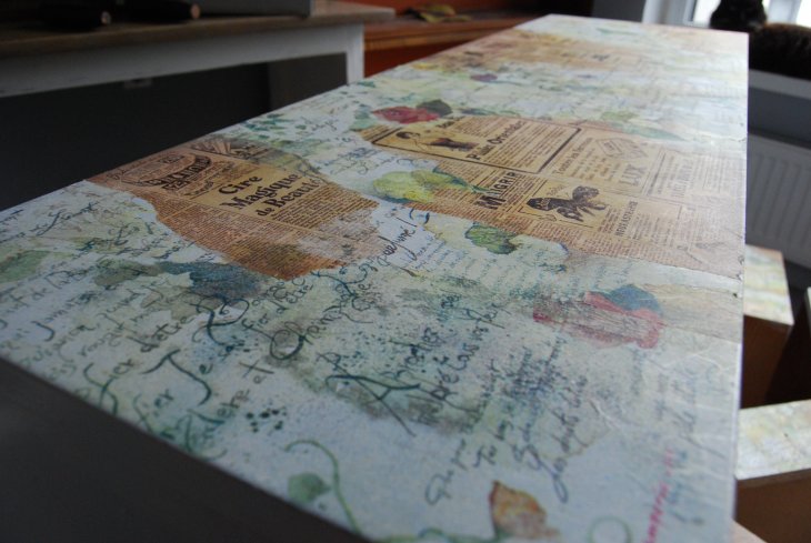 белой краской и декупажем