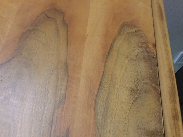 сожалению, во время шлифовки повредили декоративный шпон. Вот этими