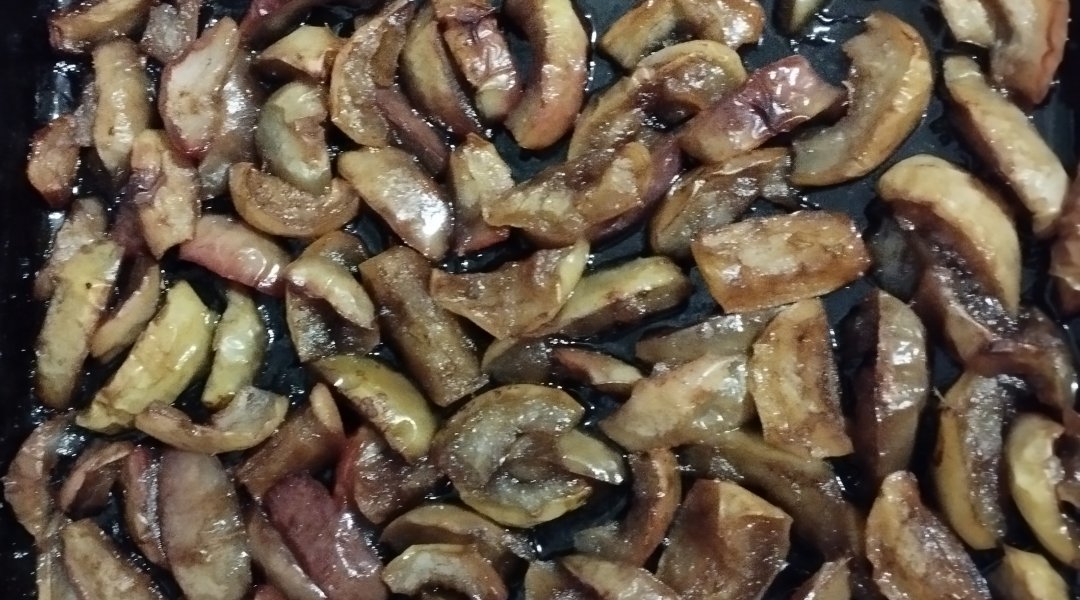 Остудить яблоки, аккуратно выложить на противень, который застелен