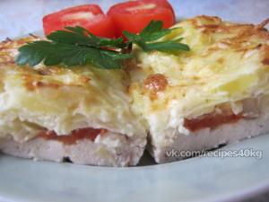 1. Филе разрезать и хорошенько отбить. Выложить на противень,