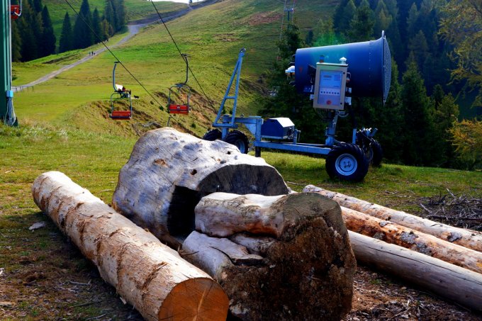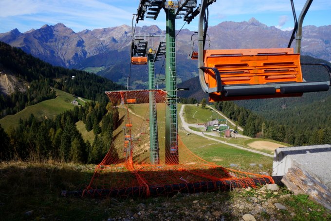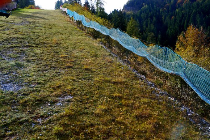 защитной сеткой, по причине отсутствия снега еще не используемой по
