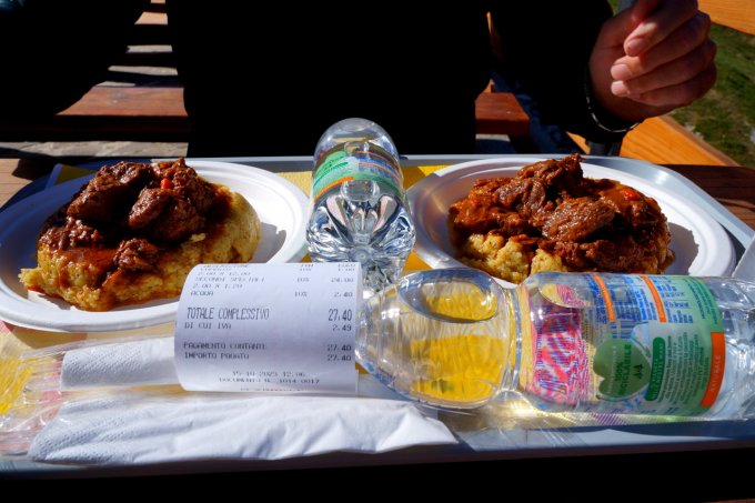 На обед мы взяли поленту таранью ( каша из смеси кукурузной и