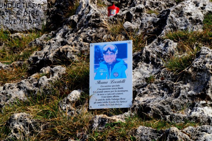 погибшей в этих местах альпинистке. С ее фотографией и со статуей