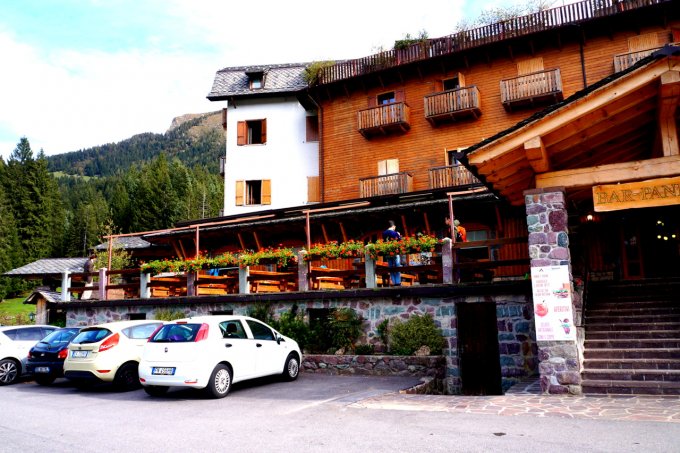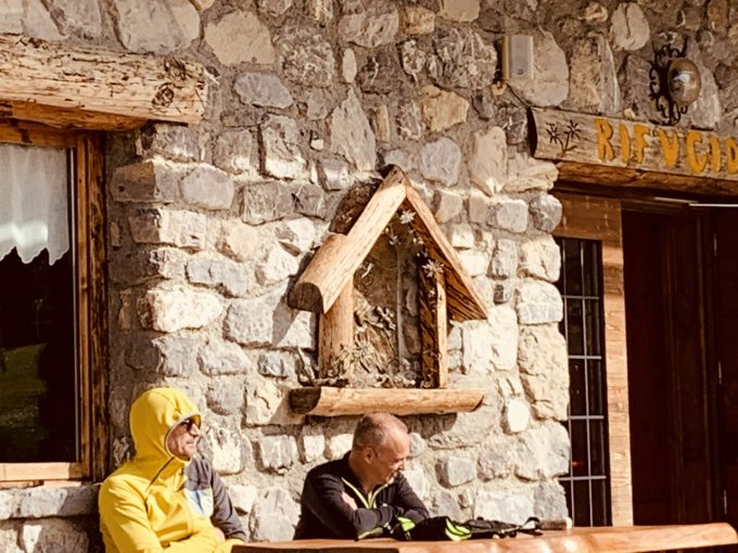 Внизу , у рифуджо, мы решили сделать привал перед спуском на