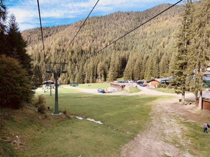 и большая парковка. И подьемник в горы. Оставив машину на парковке