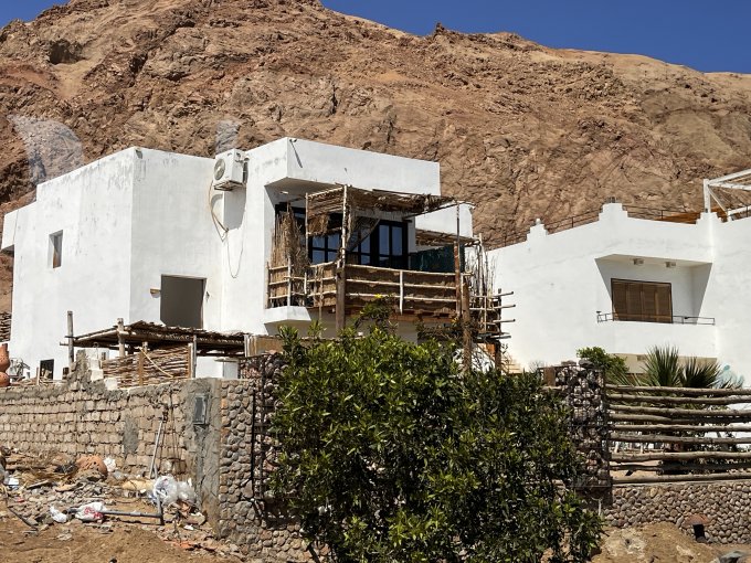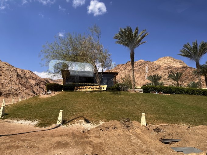 справа, и впереди - горы и шикарный сосновый лес! Пара отелей, бар