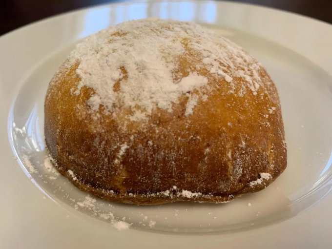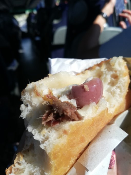мне дали большую сдобную булку, разрезанную пополам, а внутри неё