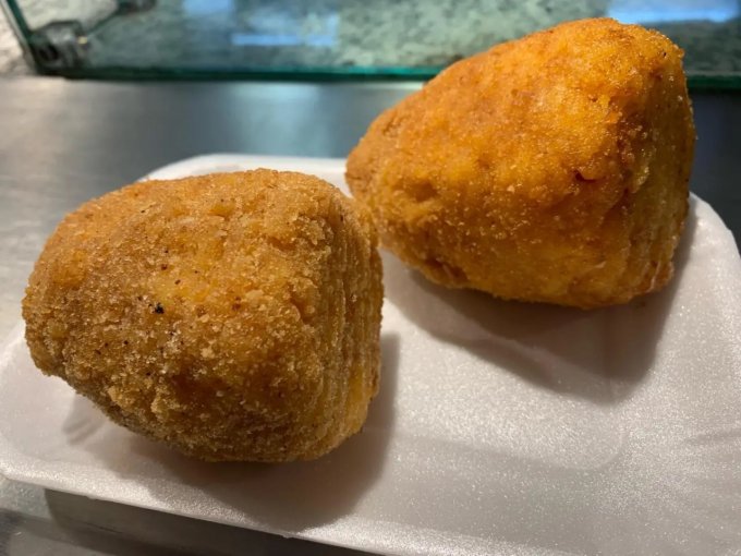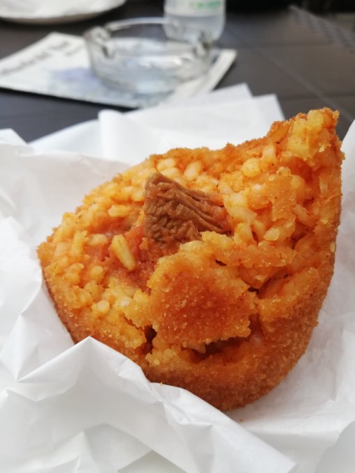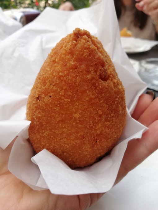 горящей огоньками Сицилии перед нами.Мы взяли по аранчине, это такие «апельсинчики»- одно из самых