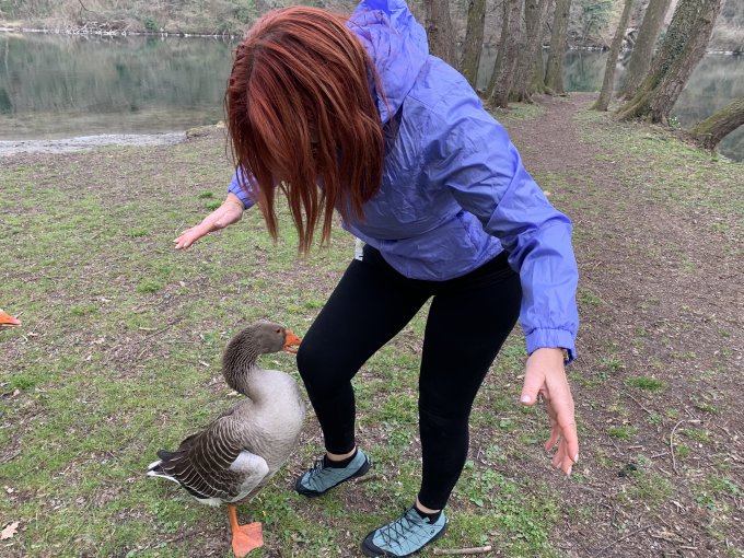 уже вышли из лесу, у нас над головой , очень низко пролетел