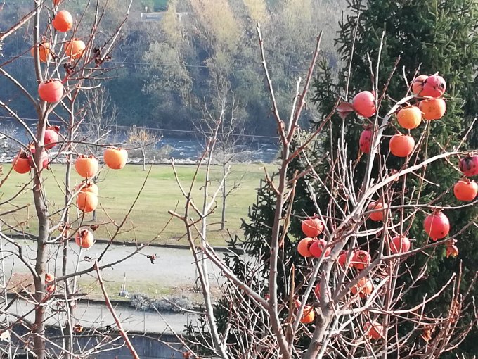 Хурма на деревьях без листьев казалась елочными шарами.. Так ярко эти фрукты выделялись на общем фоне