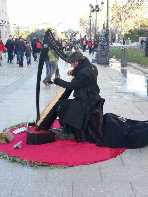 А тут парень , думая о чем то о вечном, неспешно перебирает пальцами струны арфы..