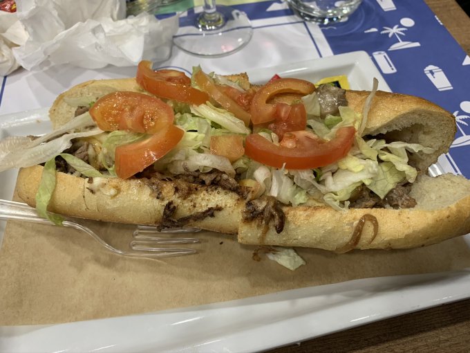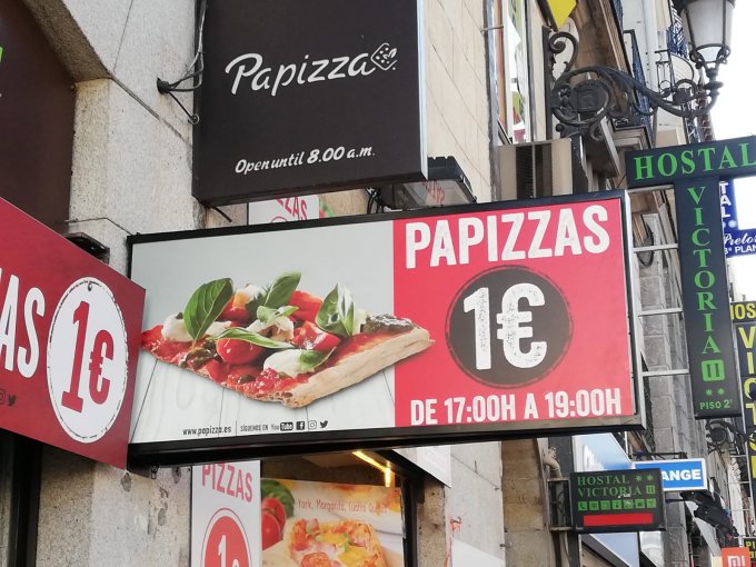 С витрин на нас поглядывали и огромные, сантиметров 20 длиной, бутерброды , или пицца фритта