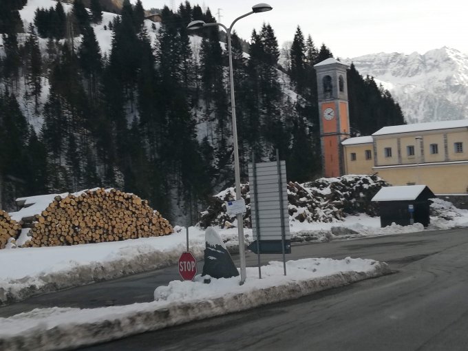 Кого сейчас снегом удивишь? Ну разве только тех, кто живет там, где снег -это редкость. Таких, как меня. А я снег люблю. Генетическая память , видимо... Поэтому уже несколько раз просила моего мч отвезти меня в горы. Он, как истинный итальянец, снег и холод не переносит. И, как мог, от поездки увиливал. А тут вдруг его осенилo: почему бы не совместить полезное с приятным? И он согласился. Правда, причину его согласия я узнала лишь в поездке. Оказывается, эта поездка - его подарок мне на грядущий сан Валентино. Ну, пусть будет так. Все лучше, чем никому не нужные подушечки, брелки и всякая чепухень в виде сердечек.( кстати, сама я ему и прикупила железную красивую коробочку в виде сердечка со швейцарским шоколадом внутри..потому что помимо снега я трепетно люблю и шоколад!.. Конечно, это не все.. Я заранее пригласила его 14 февраля на обед в один из наших любимых ресторанчиков).. Ну, это все лирическое отступление. В общем, утро, отличное настроение, одежда-как экспедиция на северный полюс-термические майки, шерстяные свитера, утеплённые штаны и горная обувь для хождения по снегу.. плюс шапки, шарфы и перчатки! Шутка ли, из плюс 13 у нас внизу подняться в Альпы на плюс 1! (  ржунимагу) , и впереди, если верить навигатору, около двух часов пути. Пока ехали, ничего примечательного не происходило. Обычные итальянские деревни..