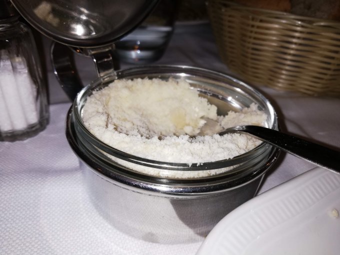 Видимо, решив, что пармезана мне не хватит, они принесли мне ещё целую вазочку этого вкусного тертого сыра.. эх, зря они это сделали.. Зря! К концу трапезы в вазочке сиротливо трепыхались несколько крупинок..